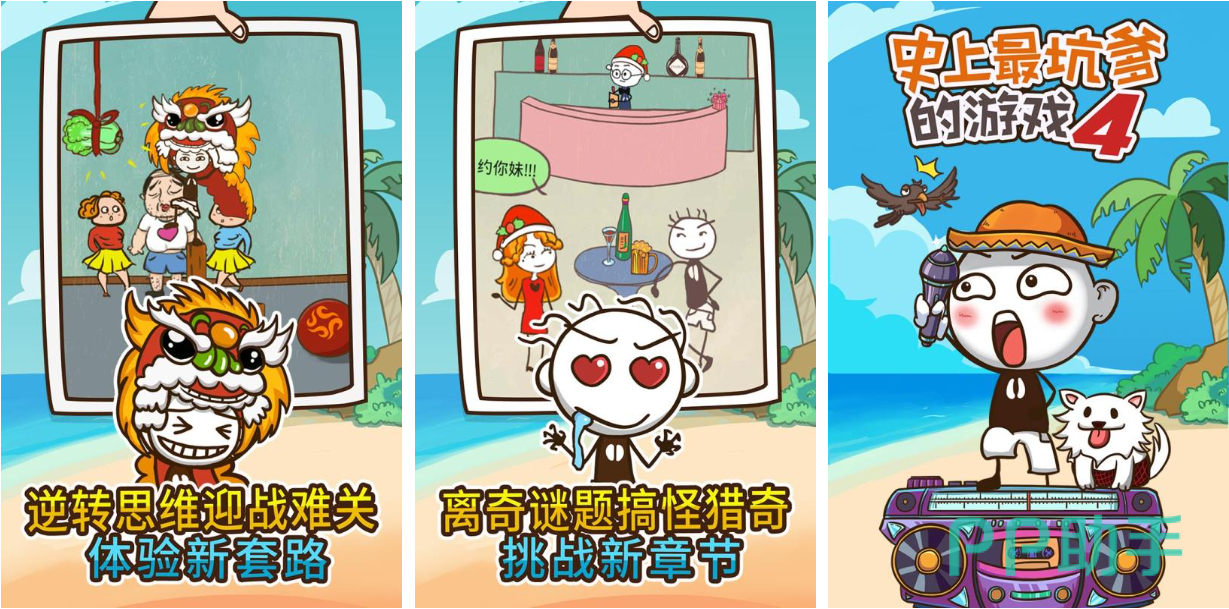 这款史上最坑爹游戏第四代作品正统延续了“坑爹”的风格,搞笑的剧情和魔性的手绘画面令人难以忘怀,爆笑奇葩的氛围和休闲解谜的玩法让玩家沉迷其中,脑洞大开的关卡设计和五大解谜章节足以让你玩到过瘾,花样百出的坑爹情节会锻炼大家的逆向思维,喜欢玩搞笑风格休闲益智手游的朋友安装这款史上最坑爹游戏吧。