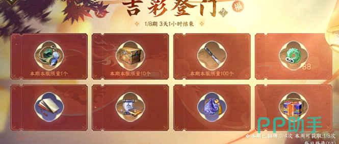 最后就是【扫寒】领现金红包活动以及【吉彩登门】活动,玩家们需要参加游戏中的翻拍玩法,一共分成了八期,每一次可以翻一次卡牌,会给玩家们准备好八个不同的物品,最高可以开出天赏石!