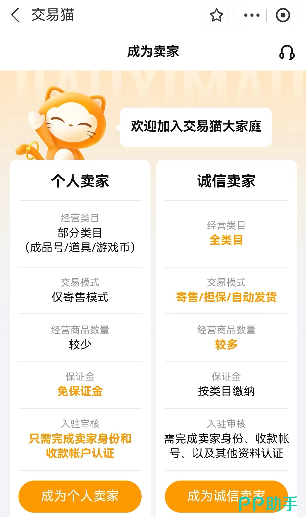 想要出售自己游戏账号拥有一个卖家身份也十分重要,下载交易猫之后先要对个人信息进行认证和审核,之后才可以去注册卖家身份,可选择个人卖家和诚信卖家两种类型,有多个游戏账号的话小编建议选择诚信卖家,也可以根据自己的情况去选择,这些各种认证和提交的内容平台都会认真查看和核对。