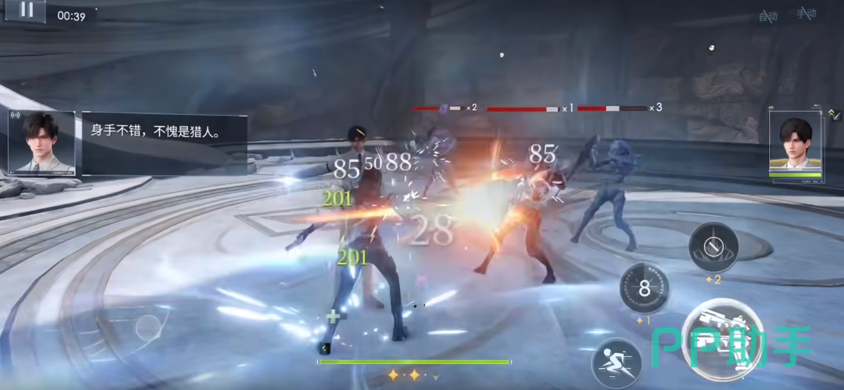 普通攻击点击武器最大的按钮,自动锁定离玩家最近的怪,普通攻击可快速连点触发三段的连击,长按2~3秒则触发重击。战斗中消耗获取的能量点可以释放两个技能,一点能量消耗释放主动技能,2点能量消耗释放共鸣大招。战斗进行攻击可自动存能量点,当怪物靠近攻击时,成功完美闪避,也可以多获得一颗能量点,最多可存储三能量点。小编比较建议刷完美闪避,因为技能的释放需要冷却cd,很多时候技能点满却没有cd,而完美闪避可以刷新一次协助技能的冷却cd。