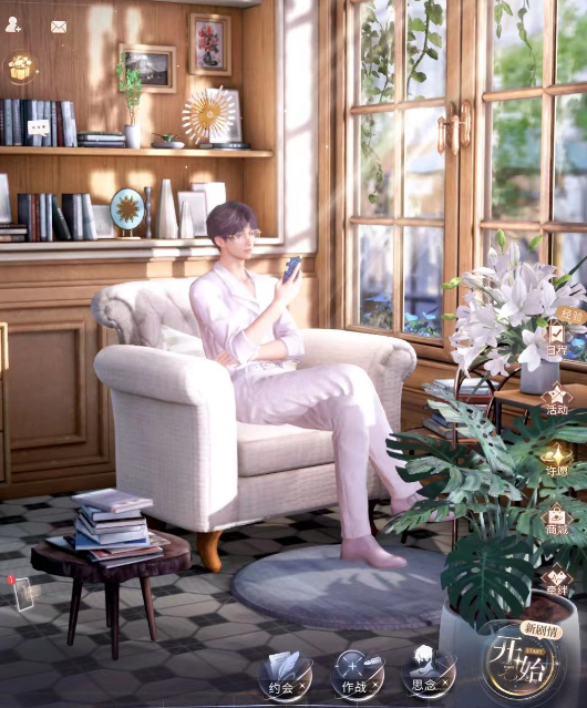 玩家的主界面设置在一个咖啡厅中,咖啡厅的装扮随每日时间点推进而变化,三位男主会随机出现在咖啡厅的沙发上,但每次只会出现一名,玩家可以点接近与其互动。想要刷指定男主角的好感,也可以选定可互动邂逅的角色列表,当只选定一名男主时,刷出的角色必为该男主。