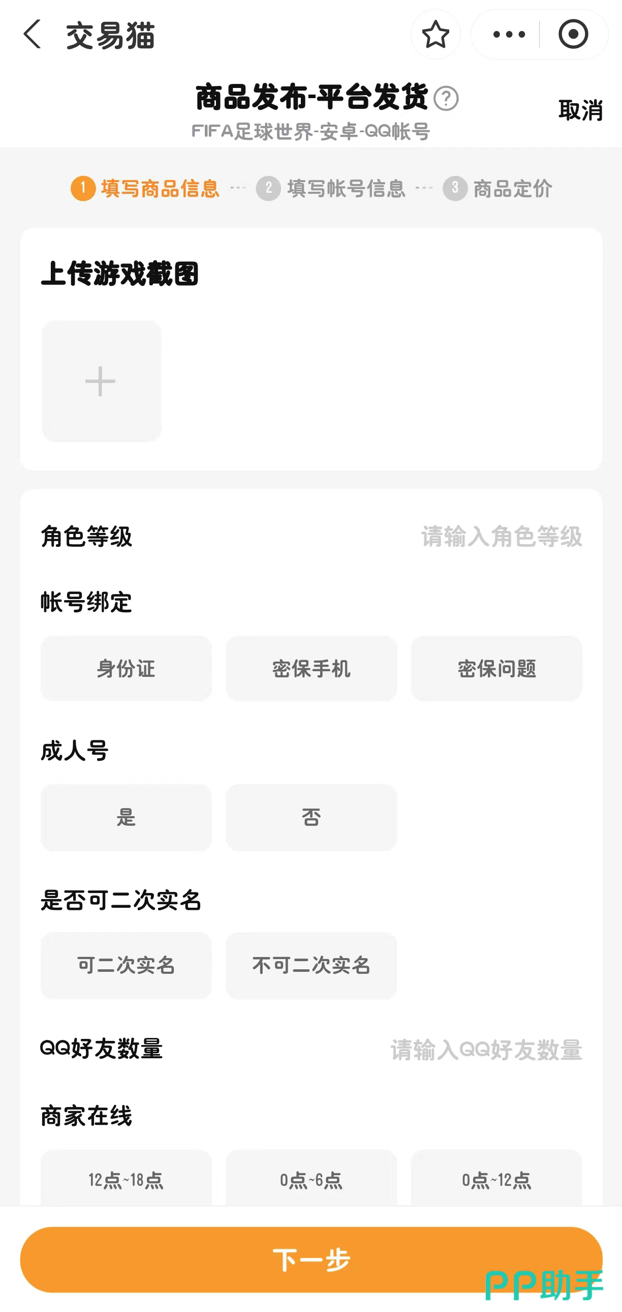 其次,卖家只需填写相应的信息并上传账号截图,即可将自己的账号作为商品发布出来。交易猫平台会对卖家所填写的账号信息和密码进行加密处理,确保卖家的信息安全的同时,还能根据自己的情况选择卖家在线时间。这样也能防止买卖双方产生误解,还能够提升沟通效率,让卖家更够更快地卖出账号。