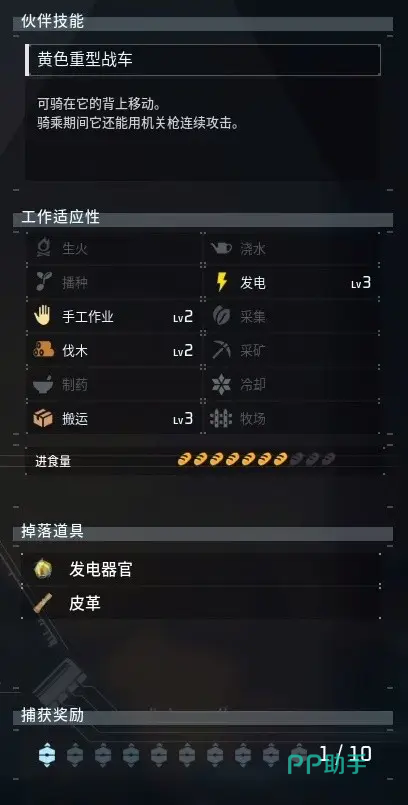 暴电熊的属性为雷,因此它在建筑方面多数都是跟工业相关的,其中可以为发电达到3级,为玩家们的家园提供更多的电源,其次就是伐木以及手工作业都为2级,可以收集很多的树木来作为资源。