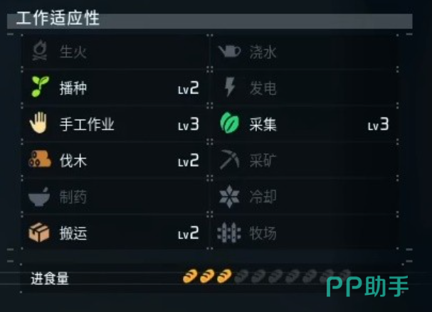 它的特点是跑过的地面会变得更加肥沃(种植园加成?),草木也会长得很茂盛(浆果加成?)。这对于玩家的农业生产是非常有利的,可以提高作物的产量和质量。不知是设计方的恶趣味还是尚未解锁,小编暂时没有发现这些特质。毕竟本作都能够RPG发射企丸丸,应该没有什么是不能做的。踏春兔的打工技能强度是手工-3、搬运-2、采集-3、播种-2、伐木-2,不愧为人型帕鲁,打工能力就是强!非常强力值得培养。