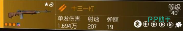 武器方面,游戏中武器分为步枪、突击步枪、射手步枪、散弹枪、冲锋枪、轻机枪这六种,首先要带大家看的是第一种步枪类的武器,在该类武器中第一把要带大家看的枪械武器叫做十三一打,这是一把单发步枪武器,可以装备高配镜,在高配镜的加持下该武器的射程是非常远的,在步枪中是数一数二的,另外它还有一个可以忽视重量的天赋,也就是说,带上这把武器后是不会占背包重量的。