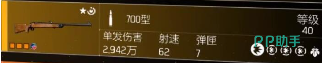 突击步枪看完后,就轮到射手步枪了,射手步枪只有一把这把武器叫做700型,该武器拥有高达3万的单发伤害,只看伤害的话,该武器是能排在全武器第一的,另外该武器还有单发装弹的天赋,也就是装一发子弹就能打一发,不用装满了再开枪这个天赋也是极强的。