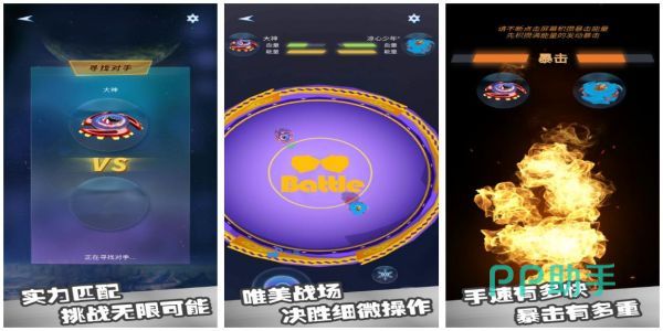 这是一款快节奏益智休闲陀螺对战手游,游戏的对决过程不超过每局两分钟,因此充满了惊险刺激感,玩家需要尽可能争取机会令自己对战存活。在游戏中,玩家将化身为陀螺对战选手,通过灵活的指尖操作在激烈的竞技对决中控制陀螺对抗对手,同时眼观六路观察全局,保障自己在有限的竞技区域中完美存活不被撞击出场外。游戏完美的运用了现实中陀螺的物理原理,玩法容易上手的同时又非常考验玩家的灵敏度和反应能力。此外游戏内的音效也非常灵动,令整体的游戏节奏非常畅快淋漓,非常值得体验。