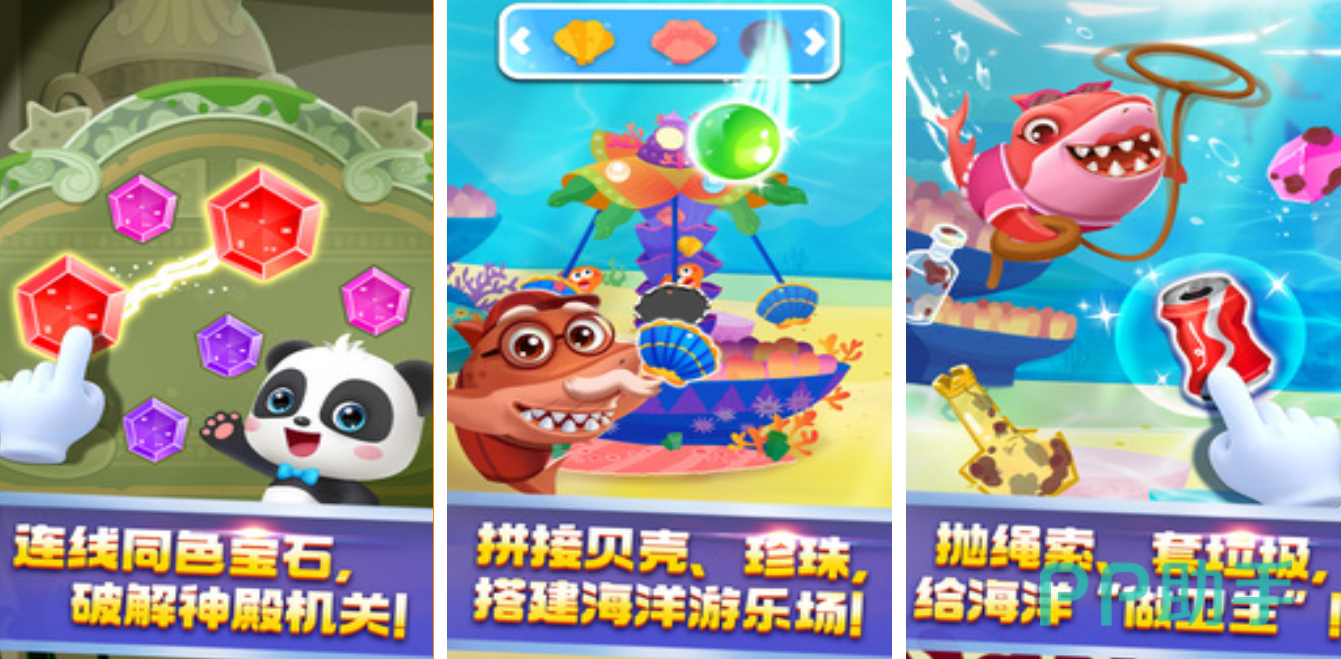 你一定没有想到海底霸主鲨鱼也可以成为小帮手,在这款游戏里,鲨鱼一家组成了帮帮队,帮助海底的生物们解决难题,比如为小水母制作美食啦,或者帮助小海马清理海藻,还要身负保护神殿的职责,游戏的整体风格轻松愉快,用有趣的互动方式带来了一些海洋的知识,同时也给大家加强了环保的意识。