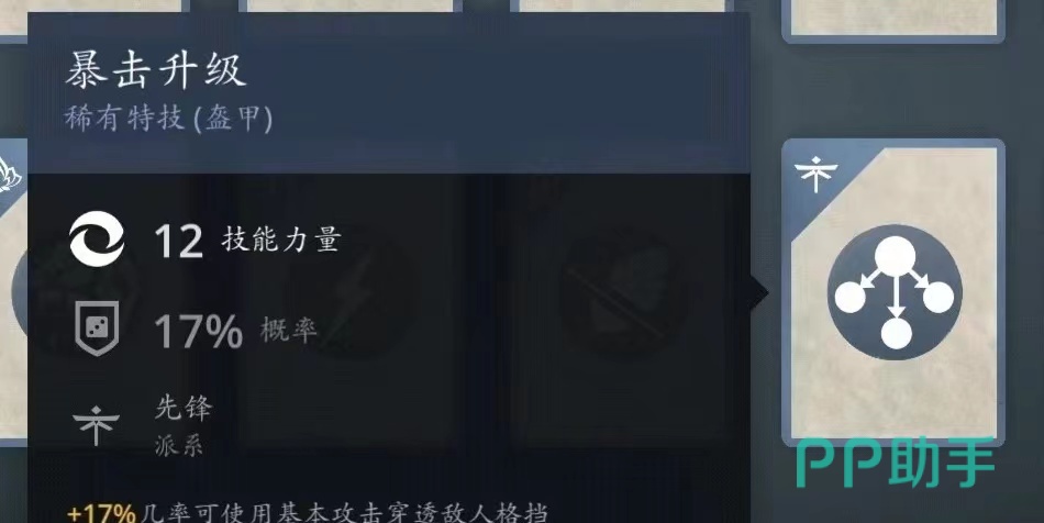 在这其中干扰一定是最优先升级的,可以说是众多玩家一致同意先锋必带武器技能之一,虽然不能直接造成输出但是可以创造极大的攻击空间。定时炸弹和额外伤害虽然是同等级的技能但是使用cd和触发难度都非常的高,所以升级不处于优先级,蒸发也是最优先升级,增加基础伤害,在白刀基础伤害已经非常高的情况下,蒸发再进一步的提高了基础伤害,可见是非常强力的组合,机制也是简单粗暴,是先锋唯一能持续提高输出的技能,而且他是头盔技能和干扰不冲突,而且配合起来非常强力,反击这个技能需要对面先对我们打出暴击然后反击,这一定也看个人的喜好来升级了,因为反击触发条件比较难,所以不建议提前升级,瞄准是非常重要的输出技能,在暴击后追加100%基础伤害可以说是前期比较简单升级的首选。