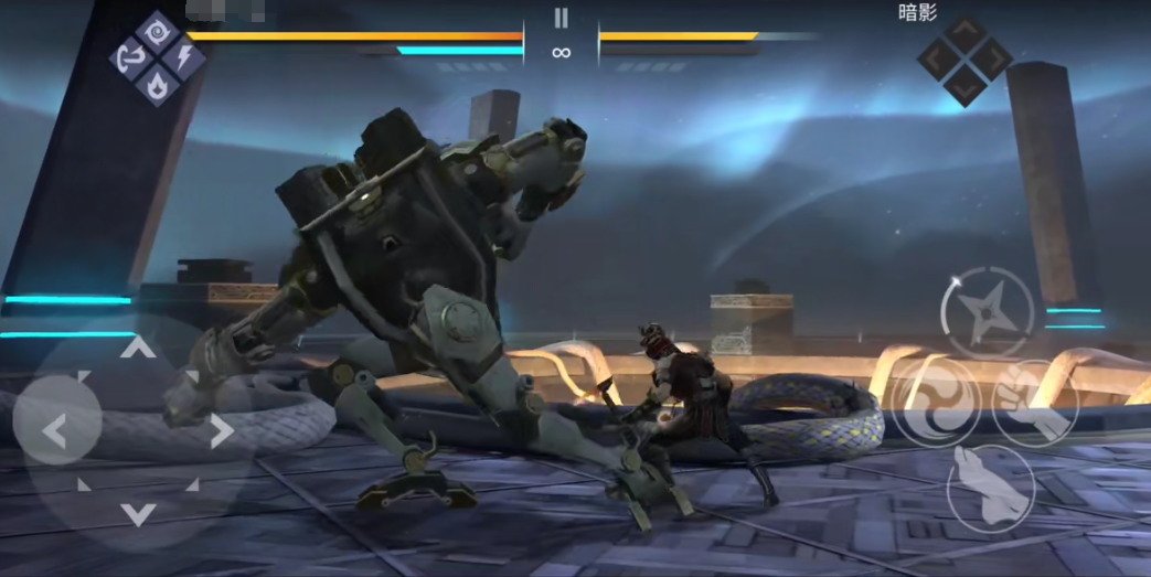 3、第二回合:第二关就比较有难度了,不过只要能注意躲避他那个炮就星。开局先依然是后跳,看看他放什么技能。比如放滚波拳就给他一个飞镖,再给他一个飞镖。击倒后使用武器暗影技能、飞镖暗影技能、头部暗影技能,之后迅速拉开距离撤离继续用飞镖攻击。需要特别注意的一点是,走进他的拳头的时候,前前就可以绕后。还需要特别注意的一点是,他的那把剑劈完以后会放炮,在其脚下斜前可以躲避炮,然后再后跳。在近距离绕后之后,B0SS就会背对着玩家,此时多用飞镖消耗就行。