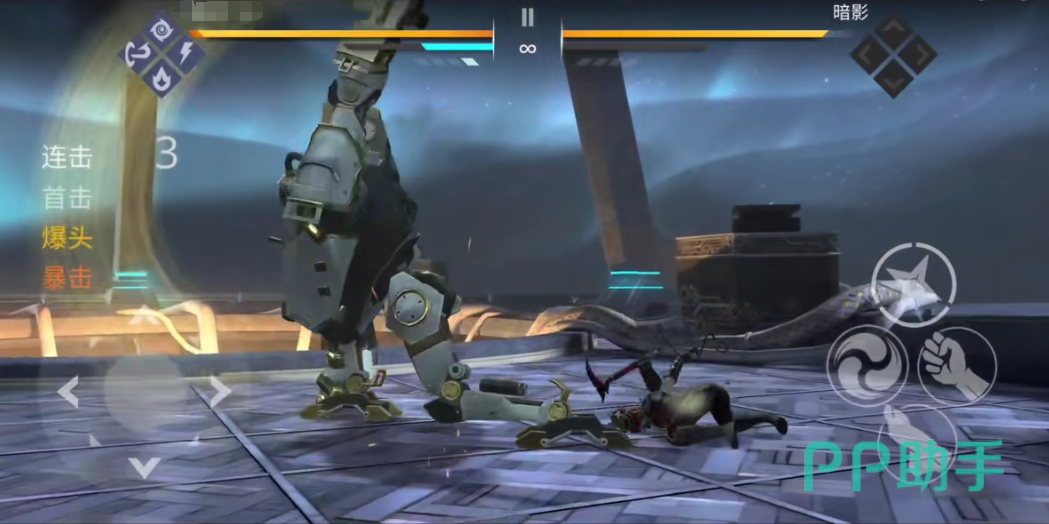 2、第一回合:开局后跳两次,然后放两次飞镖,再然后暗影技能接武器的暗影技能,继续接飞镖暗影技能,接头头快的技能,最后再退回放飞镖。当暗影技能满的时, 第一次使用暗影技能都是暗影头盔的,可以击倒第一关、第二关、第三关的霸体效果。第一关很简单,就是远处释放暗影技能,躲避他的攻击近距离绕后即可。