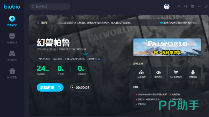 以上所为大家介绍的内容和幻兽帕鲁游戏多大,大部分的玩家对这一个内容并不了解,如果玩家对游戏有兴趣,就需要了解这些基本的内容,游戏虽然比较大,但也无需过于的担心,可以直接通过加速器来达到加速的效果。