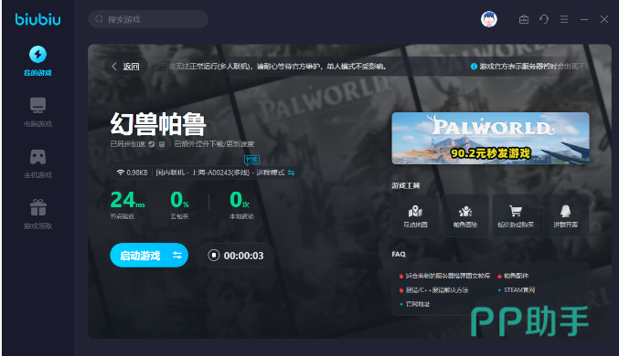 biubiu如今针对幻兽帕鲁展开加速,玩家如果是新用户,在注册之后就可以得到24小时的免费加速时长。如果可以搭配兑换码使用,还可以额外的得到三天免费加速时长。兑换码【biubiu001】使用方法很简单,无论是新用户还是老用户都可以获得,在搭配使用之后总共是96个免费加速时长。