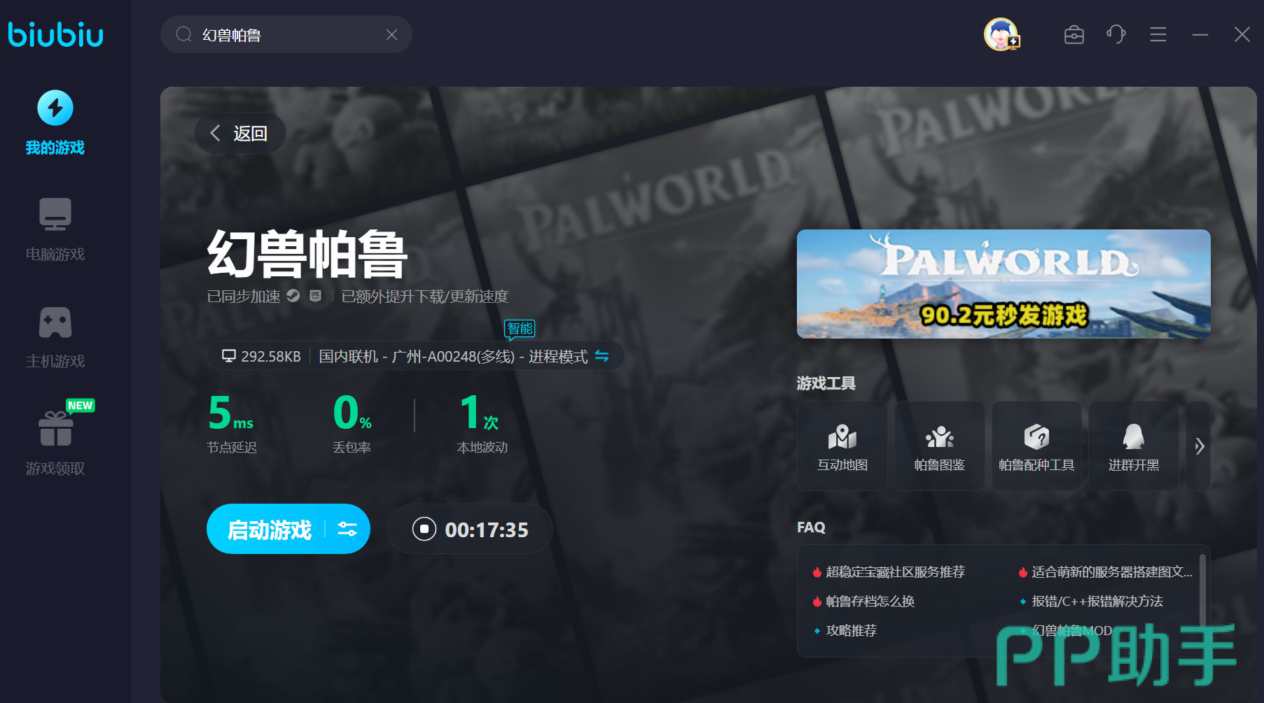 像暗巫猫这种十分稀有的帕鲁虽说用处不大,但是获取却比较难。如果在联机版更是让一众基友们抢的头破血流。那么大家可以试试小编这个自用加速app——biubiu,它能帮助我们在联机模式中畅联无卡顿。而且现在还有针对幻兽帕鲁的专项免费活动。小编送大家一个免费时长码“biubiu001”,新老玩家均可无门槛领到三天限免时长。而且pc端的朋友们新注册还能再拿24h,一共长达96h的免费时长帮助我们在联机版中无网络波动顺畅抓宠。大家快去试试吧。