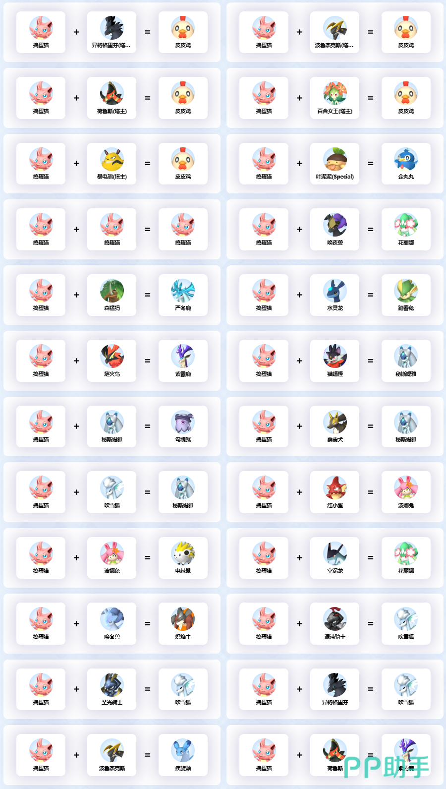 以上就是今天分享的幻兽帕鲁捣蛋猫配种表了,希望能帮助大家快速找到想要拿到的配种玩法。本身捣蛋猫自身能力及工作能力都不突出,但是也能通过配种来实现覆盖大半帕鲁的获取,总体上来说还是很适合作为种马使用的,大家快来试试吧!