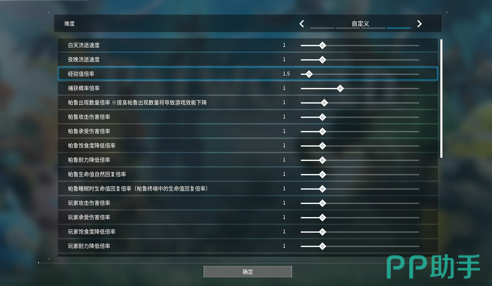 在自定义中能够修改的参数十分之多,包括昼夜的流逝速度,经验值获取倍率等等。和帕鲁和角色自身的相关数据也可以进行调控,包括攻击力、饱食度一类,应有尽有,十分的细致。如果你是一个想要轻松悠哉地体验游戏内容的休闲党,那可以把损失相关的参数调低,减轻自己的生存难度;而你要是一个致力于挑战高难度的高玩的话,那不妨把承受伤害倍率和饱食度等的参数调高,再提高帕鲁的出现倍率到最高指2,尽情体验突破困难,挑战极限的快感。