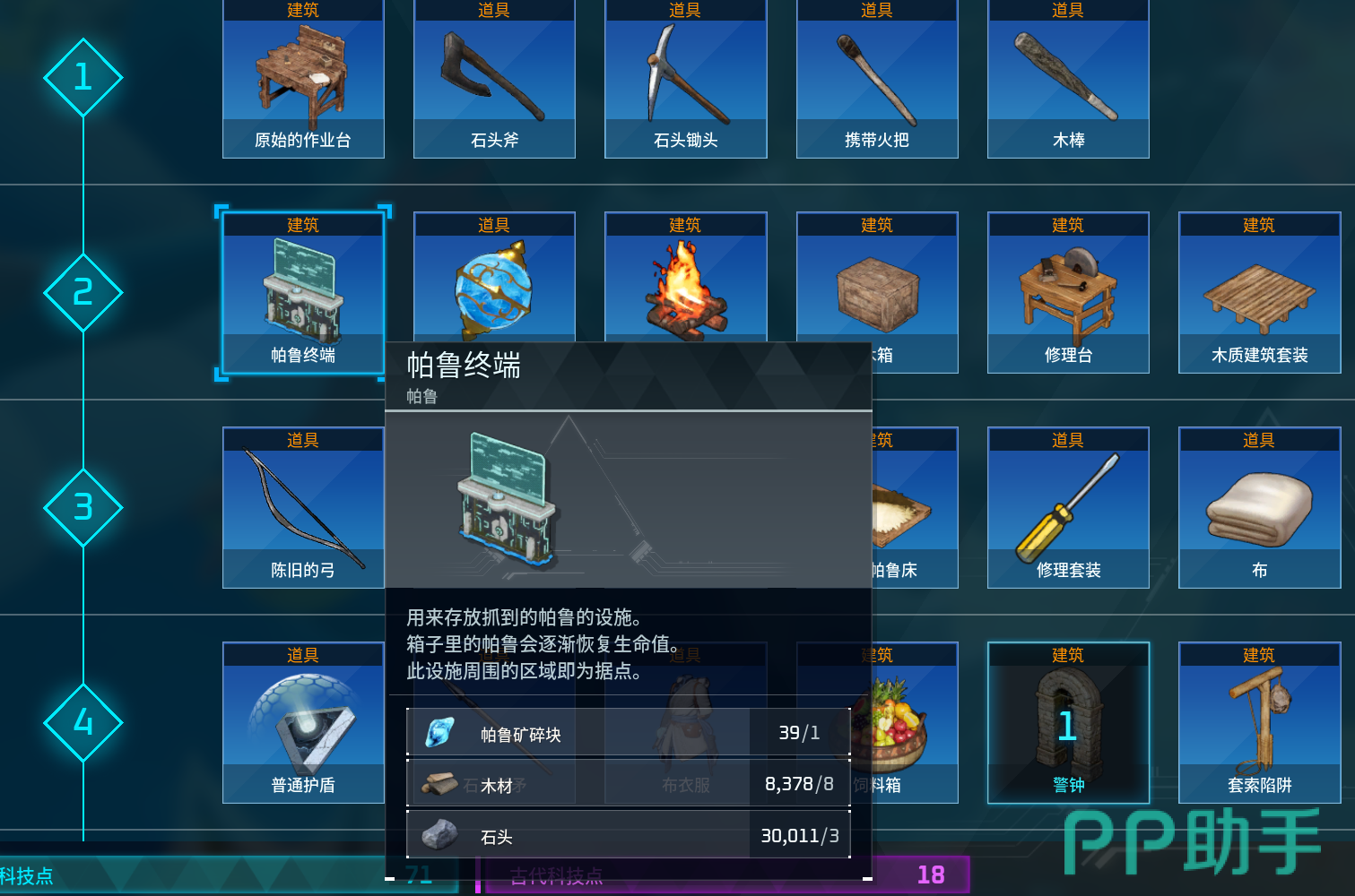 幻兽帕鲁怎么解锁基地我们就分享到这了,其实解锁基地就是我们在幻兽帕鲁的科技页解锁终端即可。当我们集齐材料、解锁终端之后,就能进行愉快的家园建设了,整个科技页共支持三个终端数量,大家好好利用的话绝对可以实现资源全自动,大家快试试看吧!
