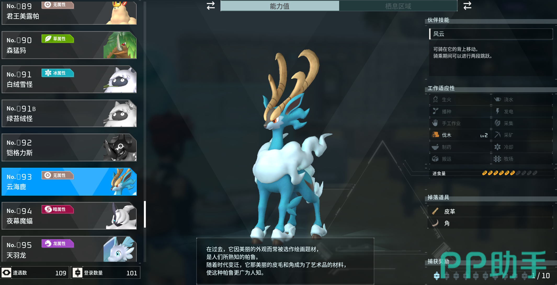 幻兽帕鲁云海鹿合成配方我们今天就分享到这了,有四个速度词条,分别是敏捷、灵巧、迅捷和传说,它们的效果是叠加的。相信通过大家的不断努力终会拿到四加成的云海鹿大家快试试看吧!