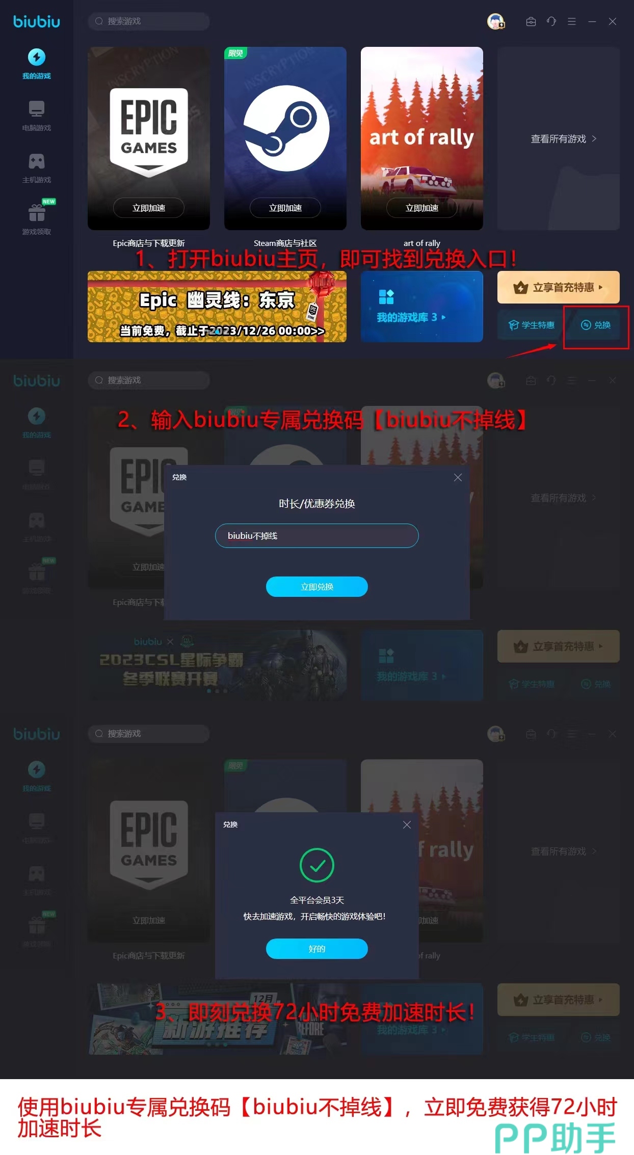 讲完了攻击就要讲防守了,在进行对战的时候要时刻保持角色的状态,有的小伙伴经常在走位的时候感觉有点卡,这就要用biubiu加速器来优化了,这样就可以拥有高帧率的环境进行操作保证动作流畅度,现在更是有新人免费使用24小时会员加速的活动,玩的不过瘾还可以用兑换码【biubiu不掉线】换得72小时额外的免费加速时长。只要网络变好了,大家就可以灵活的使用出来闪避这个动作,不管是向下蹲闪还是向后方跳跃,都是可以规避很多伤害的。