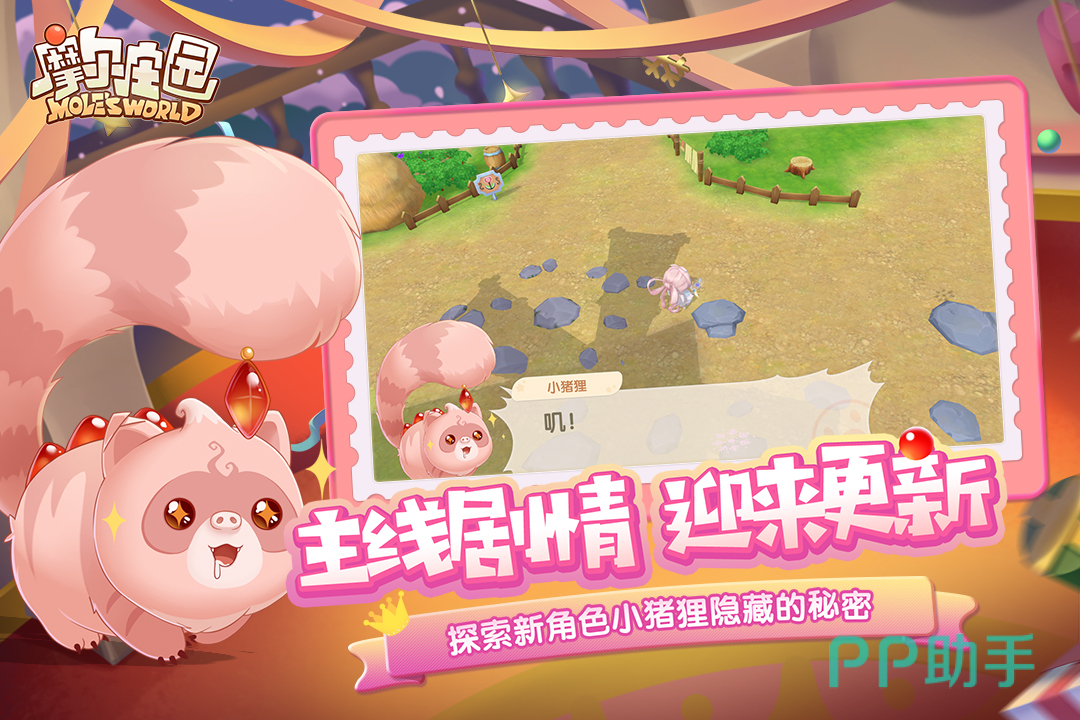 《摩尔庄园》是一款承载了很多玩家童年的游戏,游戏中你扮演的是一个圆滚滚的小摩尔,小摩尔虽然外形和颜色都一样,但可以给他更换各种时装与与其他玩家的小摩尔区分。游戏地图很大,除了庄园玩法以外,你还可以和其他玩家社交。此外,游戏中还有非常多的小动物可以饲养,尤其是最新的主线剧情,你还可以探索小狸猪故事,等到将它的故事探索完成以后,就会获得这个宠物哦。