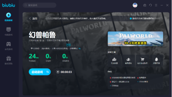 其实不同类型的帕鲁蛋在孵化的时候,条件方面可能会有一定的区别。不过对于玩家来说,在孵蛋的时候也需要注意细节性的问题,比如整个游戏突然出现卡顿的情况,这时候玩家可以下载biubiu加速器体验,新用户下载注册之后,就可以获得24小时的免费加速时长。