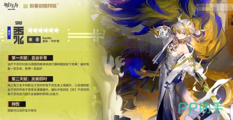 今天介绍一下明日方舟黍是谁,黍是即将在新版本推出的一个限定六星角色,很多玩家都对她十分感兴趣,所以接下来小编就全面的介绍下这个角色,包括她的天赋,特性和技能都会进行提及,感兴趣的朋友可以过来看看,这能够让你提前对她建立了解,从而更好的判断是否入手她!