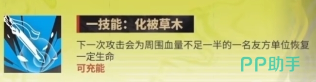 二技能则会停止攻击并专注治疗最多两名队友,同时提升攻击和阻挡数,该技能还可联动第一天赋的效果,以此触发额外回血与庇护。