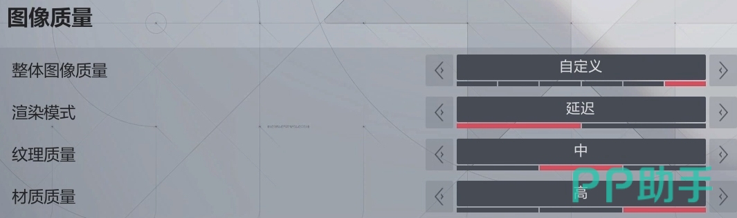 第二个类目则是图像质量,需要设置四项才能实现最高画质,首先把整体图像质量拉到最右边,然后渲染模式则调到右边成为实时,最后纹理质量和材质质量调到最右边变成高。