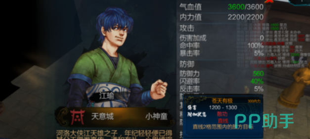 江瑜这个角色擅长拳掌,天赋为天生神童、潜龙蝶影、支持,意志坚定。其中天生神童可以提高全队获得的经验值,小伙伴们如果在前期想要快速升级的话,那么带上江瑜将会得到不错的效果。接下来是这个角色的四维,身法65,悟性96,根骨62,臂力73,可以说都是平平无奇,但最大的亮点在于二级属性,也就是暴击13%,反击15%和闪避6%。