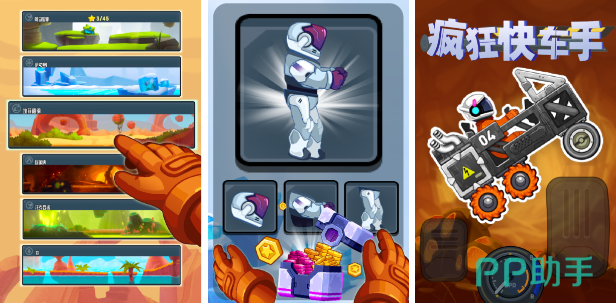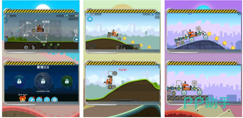 暴爽疯狂赛车是款就具有街机风格的单机横版赛车游戏,凭借造型奇葩的赛车和复杂崎岖的路况吸引了不少粉丝,各种类型的竞速模式和卡通向的背景渲染令人耳目一新,光怪陆离的背景设定和考验微操的驾驶过程也是本作的亮点,自行改装赛车的玩法可谓十分特殊,你甚至可以在小小的赛车上增加数十个轮子……
