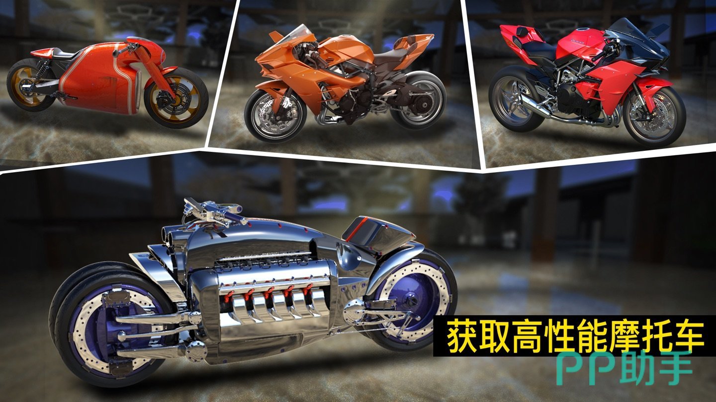 让你骑车刺激冒险,开心开怀!任何风格的酷车,从造型到性能都带给你独一无二的驾乘体验!还不仅如此,你还能在赛道上与其他选手动手动脚,感受极限的对抗!通过全新研发的绝妙战斗系统,你可以放肆出击,制敌无数!飞驰的赛车,完美的漂移,让你心跳加速、血液沸腾!而且还有超真实的赛道设计,让你仿佛亲临场地,直击摩托车的速度和激情!快来挑战自己,在这个终极摩托盛宴中体验刺激和激情的结合吧!