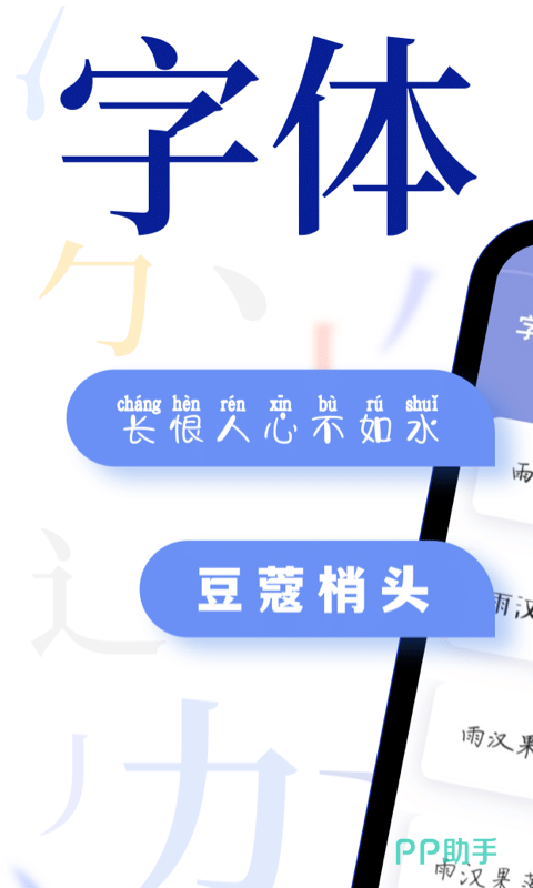 这是一个可以帮助大家快速进行字体更换的工具,可以快速进行字文字的输入,得出相应的字体样式,一系列好玩的字体都可以快速下载导出,安装在手机上,用来丰富自己的文字内容,让文字输入输出变得更加不同。