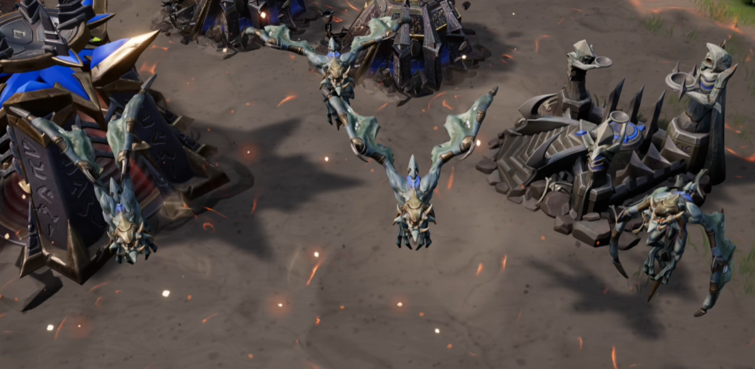 风暴之门的核心玩法是建基地,采集资源,攀科技,量产战队。有两种主要的资源:金属和气体,分别用于建造建筑和生产单位。游戏的科技树分为三个阶段,每个阶段都会解锁新的作战兵种,以及提升现有单位的能力。游戏的部队分为步兵、载具、飞行器和特殊单位四种类型,每种类型都有自己的优势和劣势,需要玩家灵活搭配调度。战斗系统注重单位的微操,玩家可以通过使用单位的特殊技能,或者利用地形和视野等因素,来获得战斗的优势。