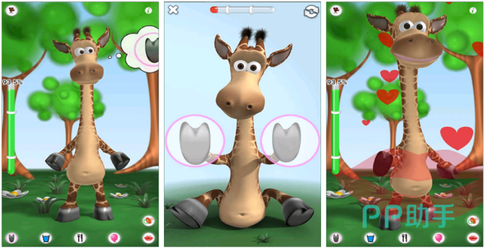 通过触摸屏幕,可以为长颈鹿喂食、给它擦洗、给它玩具等等。长颈鹿会根据玩家的互动做出不同的反应,让玩家感受到与它的亲密互动,为玩家提供了一种有趣的互动体验。也可以与长颈鹿进行虚拟对话,增加游戏的趣味。玩家可以为长颈鹿打造一个舒适的成长环境,可以给它选择不同的食物,定制它的居所,装饰它的房间等等。通过不断地提供食物和关怀,长颈鹿可以健康成长,并带来更多的乐趣和惊喜。