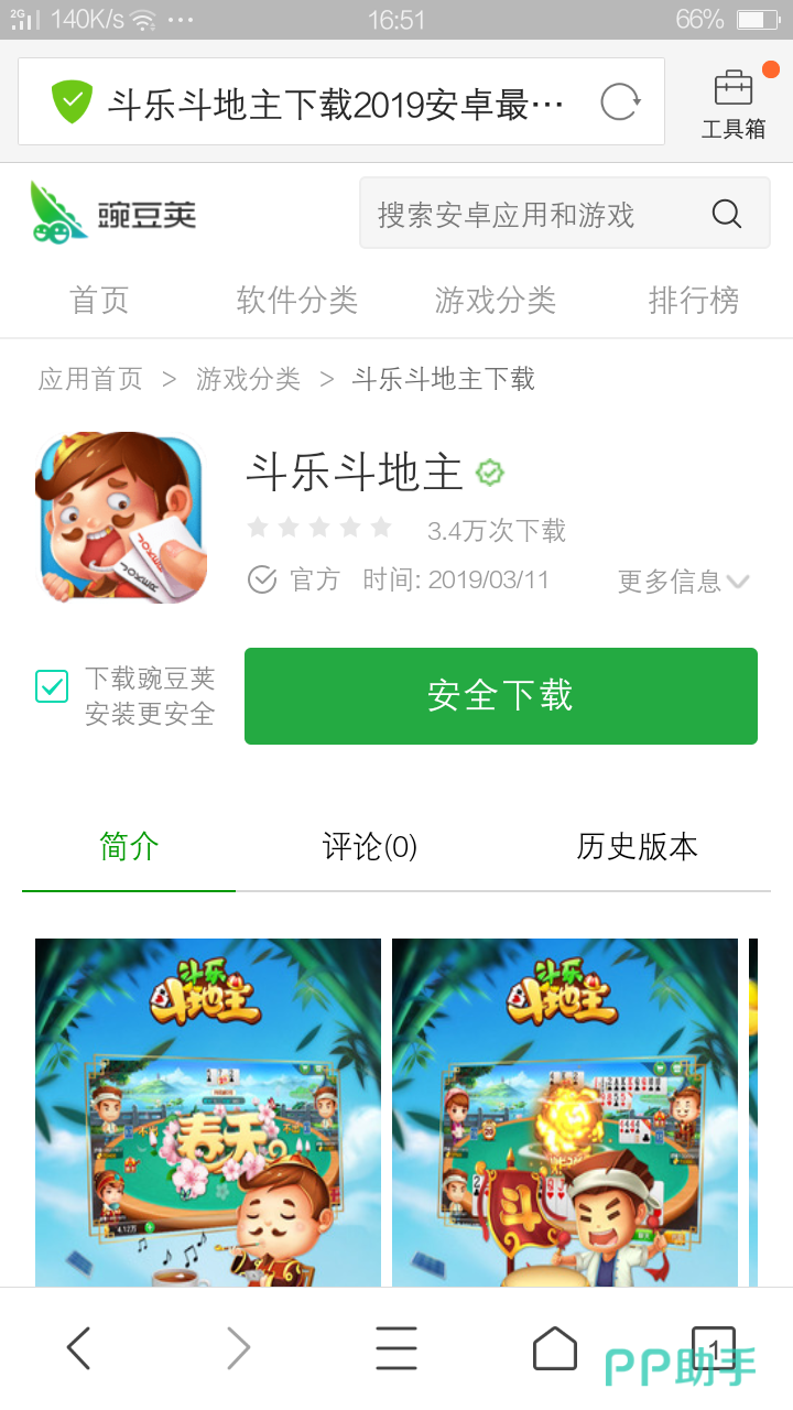 方法2:进入豌豆荚官网,搜索斗乐斗地主并进入详情页,点击【安全下载】即可。