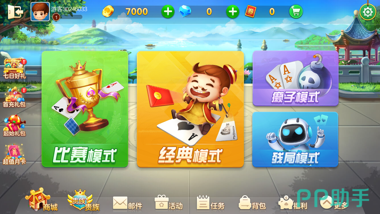 主页里面还有其他玩法,癞子玩法,残局模式,比赛模式,丰富了玩家在该游戏中的体验。