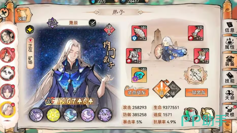 第三个非常值得培养的角色叫【萧辰】。作为《最强祖师》中的强力输出角色,他的超高伤害的aoe技能,能够让他在游戏的初期和后期都拥有非常大的影响力。而且长相也是十分帅气,对于宗门建设拥有较强的贡献。