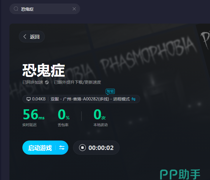 在下载加速器以后,可通过主页搜索引擎找到恐鬼症,接着点击开始加速即可。可以对上千款游戏进行加速,市场上面的绝大多数游戏都可以在这里找到,为了用户体验起来方便,还把一些热门游戏放到专栏方便寻找。支持多端口的同步加速,完全不用担心随意切换之间影响网络,改善登录困难和经常掉线,让你玩外服游戏也能顺畅登录,是你们体验恐鬼症游戏的好帮手。