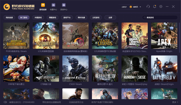 加速器利用SD-WAN+核心网络加速技术和遍布全球的节点来提供加速服务。加速器的计费方式是加速器实际使用的时长,精确到秒。在加速器的游戏库中有多款热门游戏,还有很多的端游和主机端游戏。