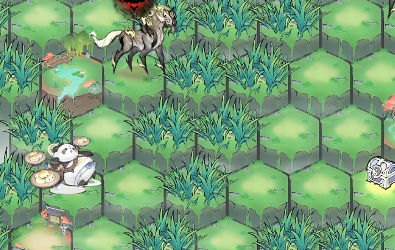 接着我们需要往右上角走。时刻注意草丛和雷麟马的位置。我们需要不断的周旋,来到草丛之中,这样我们才不会被雷麟马打到。接着来到最后一个草丛,就可以直接开启关卡的宝藏了。