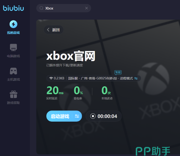 不过这款软件的服务器在国外,所以对于距离遥远的国内伙伴来说,数据运输方面可能能会遇到很多的延迟,从而导致卡顿或者是闪退等情况的发生,若是想要流畅的体验的话大家可以尝试下biubiu的这款加速器,免费下载安装的链接已经为大家准备好了点击就可以快速的拥有,新用户是可以领取到24小时的免费加速时间的,在首页直接搜索xbox启动加速就可以放置后台了。