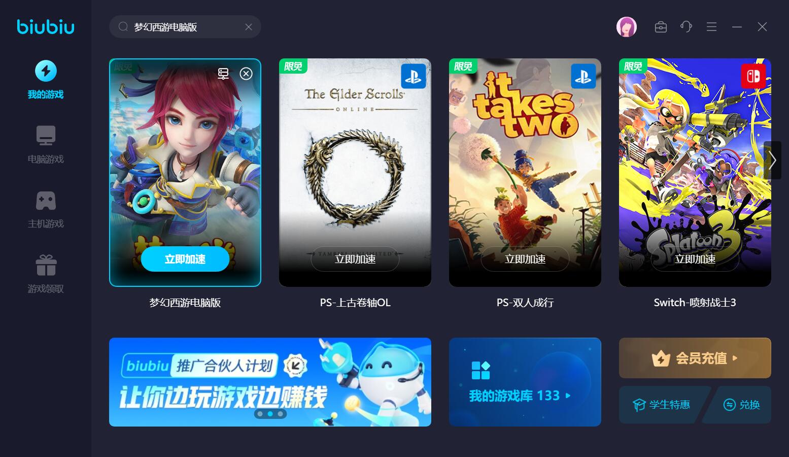 平台还推出了一些福利优惠,要是你是首次使用这个软件,那么注册登录之后,就能领取24小时免费使用时长,输入【biubiu不卡顿】这个兑换码之后,还能领取3天免费使用时长。