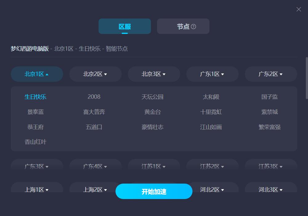 游戏在全国不同的地区设置了专门的服务器,玩家在加速前,可以根据自己账号的情况,去选择对应的服务器进行优化。