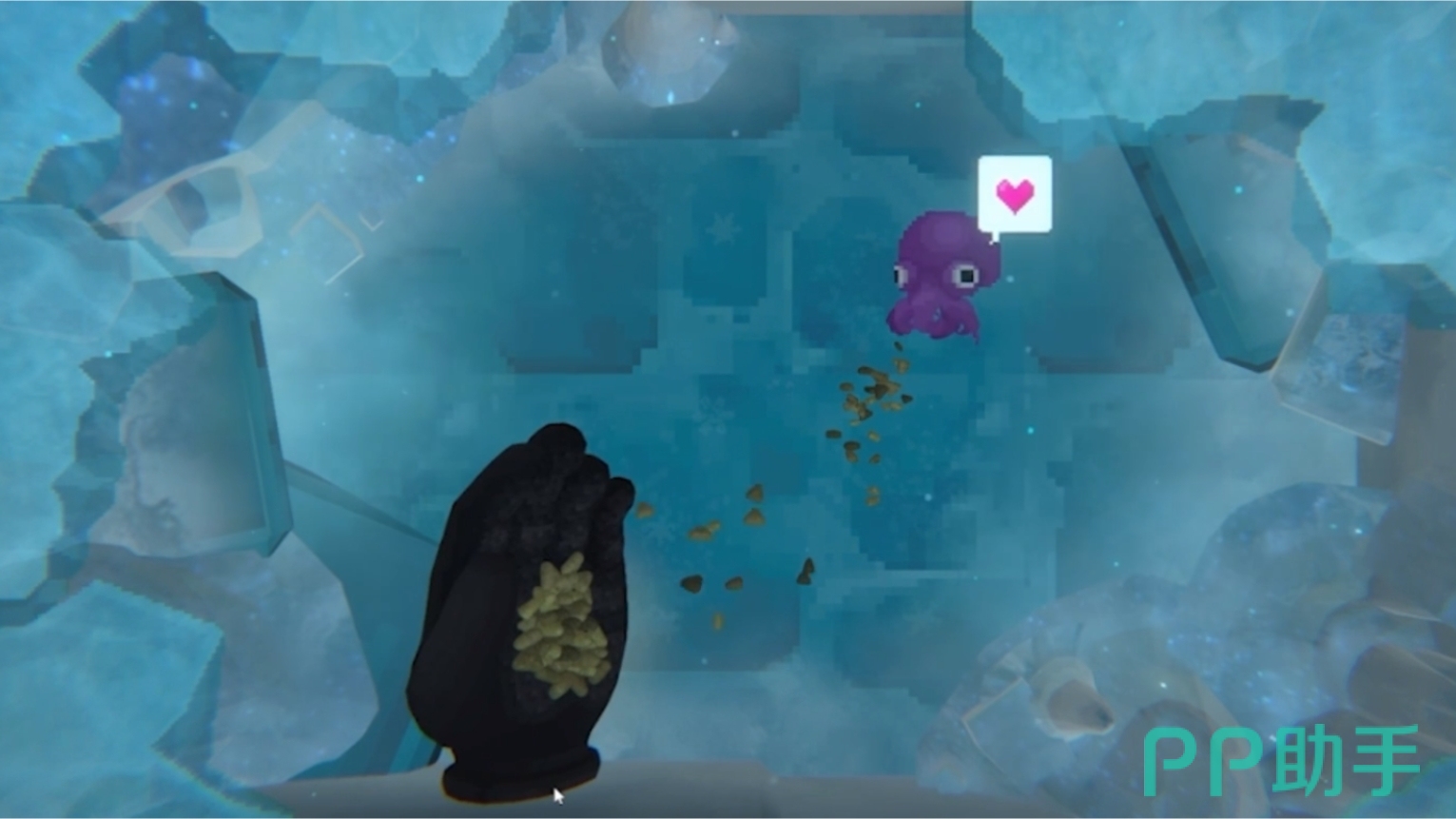 接到任务并进入鲛人村的冰洞后,玩家将会遇到一只发光的水母,跟着它走到第三图便能发现塞尔吉奥的位置。其中第一张图没有难点,玩家只要紧跟在水母身后便可以,还可以顺手抓一下途中遇到的鱼类。