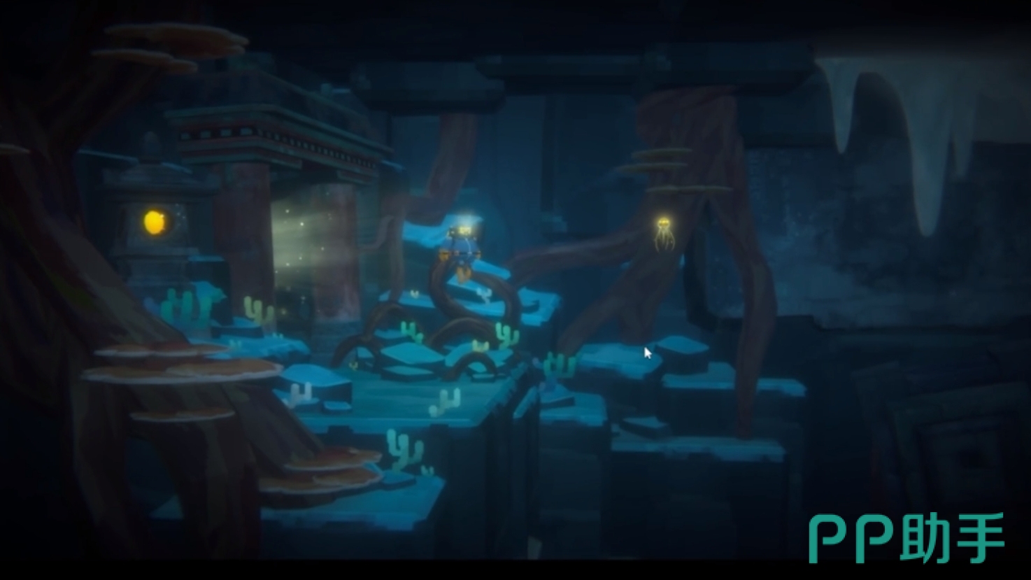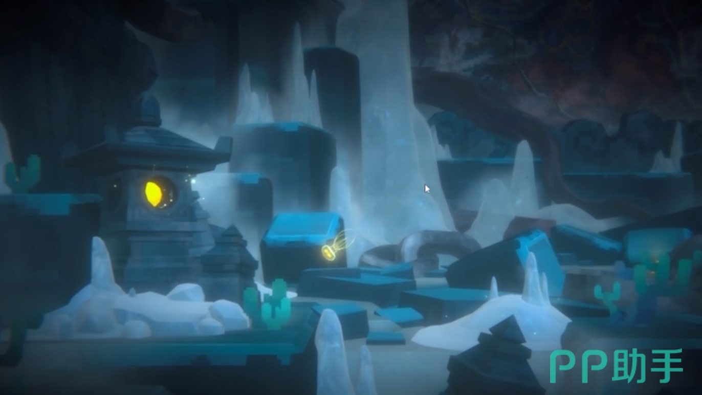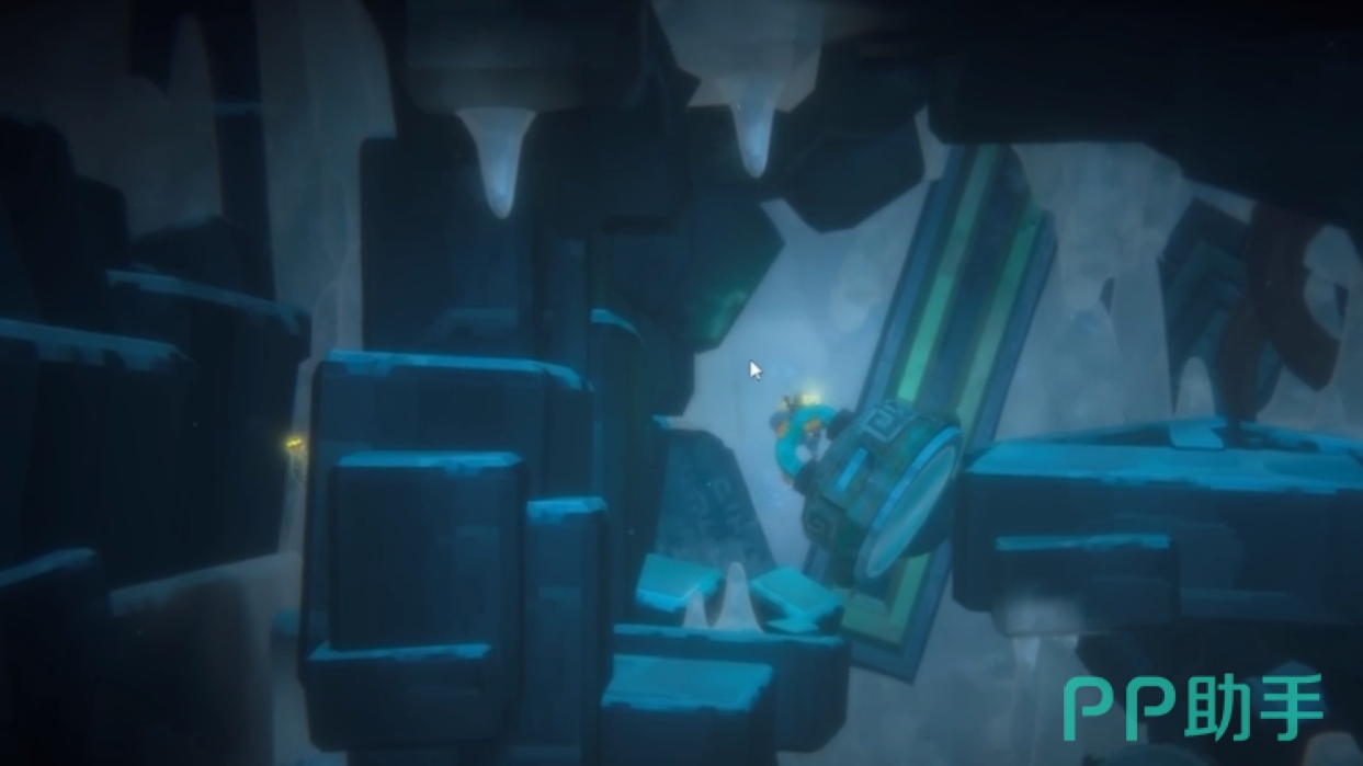 而在第二张图的场景中,共有三处需要玩家进行互动的地图,前两个为推动石块打开通路,后一个为转动机械,玩家按其转动的规律通过后便能达到第三张地图前。要注意的是,这张图有时间限制,若玩家通过速度太慢,很可能会跟不上发光水母的节奏,但好在水母的游动线路固定,玩家失败一次后,可在第二次时抢先按上一次的路线走,在终点等发光水母的到来。