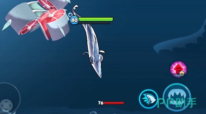 所以游戏中直接光凭自己发育达到80级的话还是非常困难的,不过如果只是对付一些npc对手,那么还是有一定机会达成,当然,前提是选择一些强度较高的鱼类,建议选择抹香鲸和巨齿鲨这种进攻型较强的鱼。