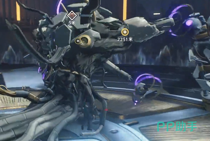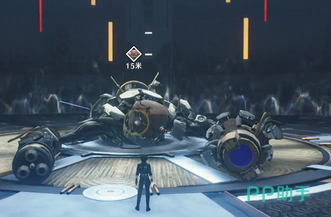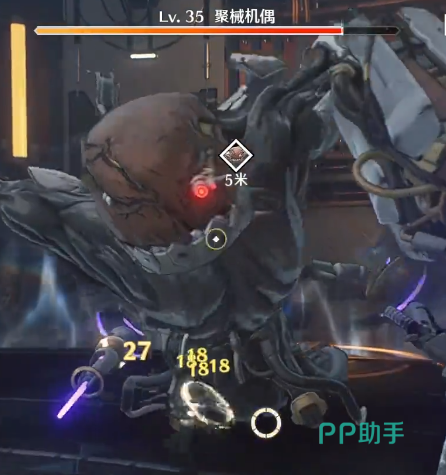 玩家们在主线到达地下遗迹的时候便会遇到这个BOSS,玩家们在降落地面的时候便会触发这个遗迹的警报,之后头顶就会伸出一个支架,这个支架上面便是聚械机偶。在等待一小段时间后支架便会将聚械机偶给放下来。这个时候我们的BOSS战也会正式开启。
