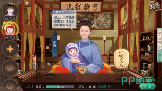 1、 想要快速获得提高皇子的能力,可以点击右边的“一键完成”,这样就会快速培养阿哥和格格。
