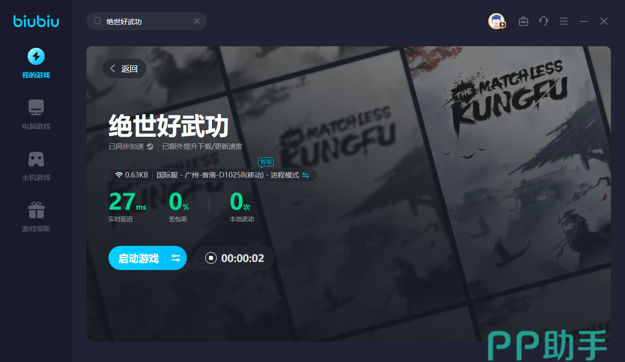 由于绝世好武功目前暂时未存在国服,所以打算进入国际网的话,变得利用好biubiu,才能自动匹配到对应的网络节点,一路畅享飞速网络。游戏内的水墨风场景虽然华丽,但是没有足够好的网络,也很难加载出来。这时biubiu即可改善环境,令你可更加自信地直接打开最高画质,接着便会展现古色古香的水墨风景在大家眼前。这时新用户还可领取24H的免费加速,令你先在绝世好武功里玩一波,再决定后续要不要玩。