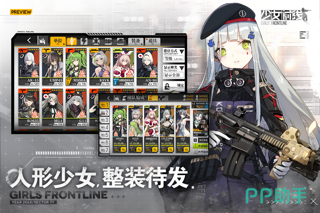 《少女前线》中的卡牌角色也全都是女孩子,游戏的时间线设定在未来,全世界被污染,人们为了争夺物资,爆发了第三次世界大战,战争结束后地球已经沦为废土,因为劳动力不足,不少模仿人类的外形的生命体逐渐出现,这些人形的生命体就是游戏中的卡牌角色。游戏中一共有300多名女角色,每个角色使用的枪械武器都根据真实武器设计,有即时战斗和战术推进两种玩法,大家可以随意选择。